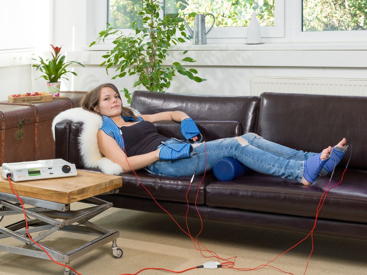 Dieses Elektrotherapiegerät ist für die Behandlung von Arthrosen konzipiert und arbeitet mit einem sehr angenehmen und effektiven, mittelfrequenten Wechselstrom. Es wird zur Spasmussenkung bei MS, bei Schlaganfall und Cerebralparese eingesetzt und hilft die Schluckfunktion bei Parkinson zu verbessern. Während der Behandlung ist ein leichtes Kribbeln zu spüren.