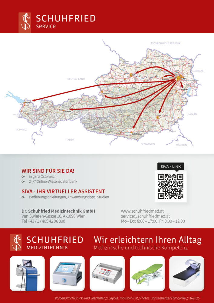 Dr. Schuhfried Medizintechnik ist Ihr erfahrener, rundum zuverlässiger Partner. Die Zusammenarbeit beginnt bei der gemeinsamen Planung und umfasst die Einschulung Ihrer Mitarbeiter und Wartung der Produkte.