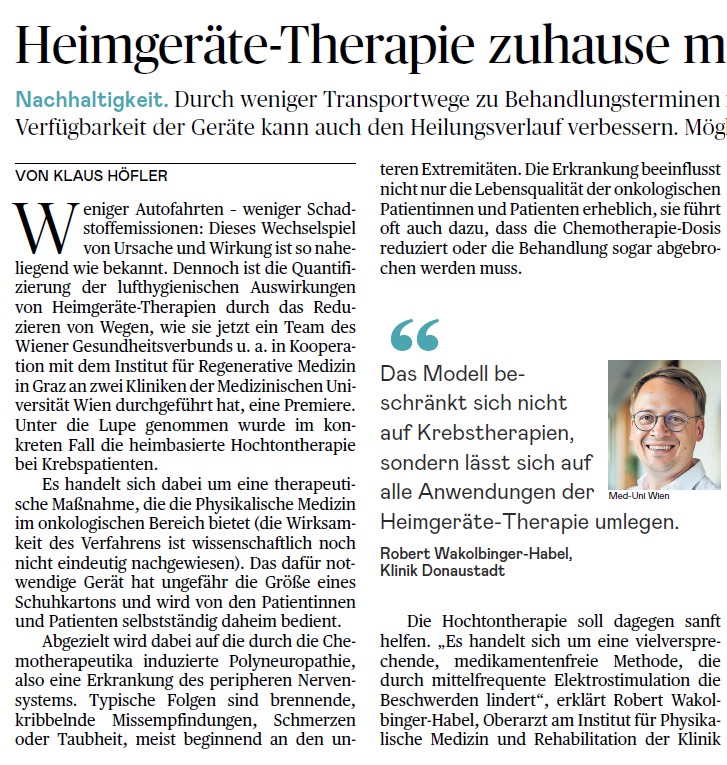 Durch weniger Transportwege zu Behandlungsterminen im Krankenhaus schützt man nicht nur die Umwelt, die permanente Verfügbarkeit der Geräte kann auch den Heilungsverlauf verbessern. Die Presse 11.04.2026 ...