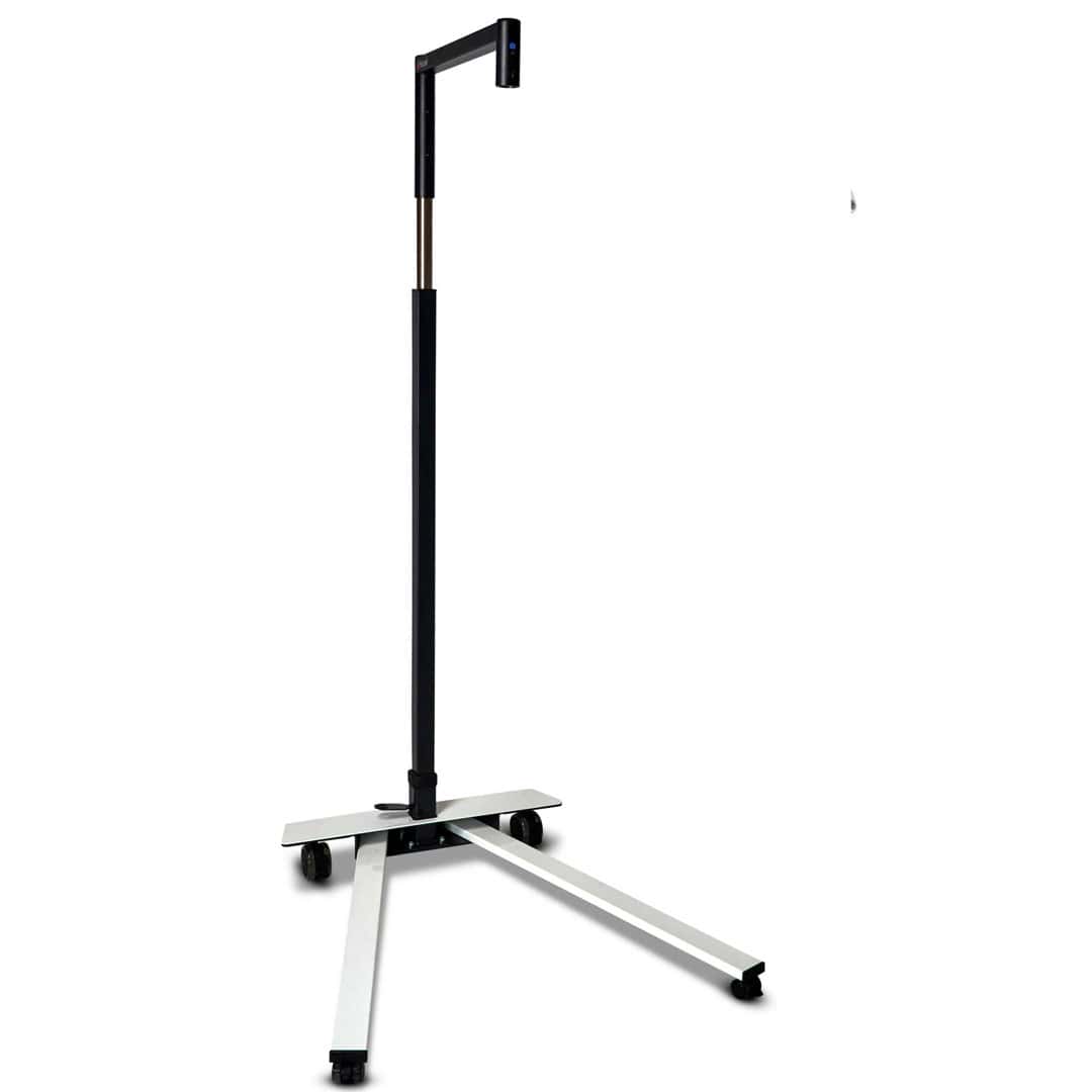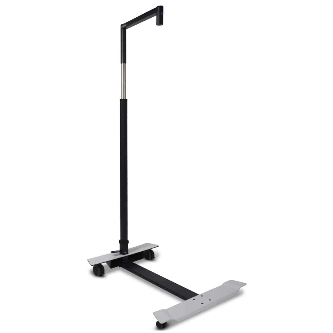Eine stufenlose Höhenverstellung von 1655 bis 2046 mm (Oberkante Stativ) ist möglich. Alle Strahlerstative sind fahrbar und bieten eine Hubunterstützung durch Gasdruckfedern. Dieses Produkt passt unter die meisten Behandlungsliegen mit Rundumbügelbedienung.